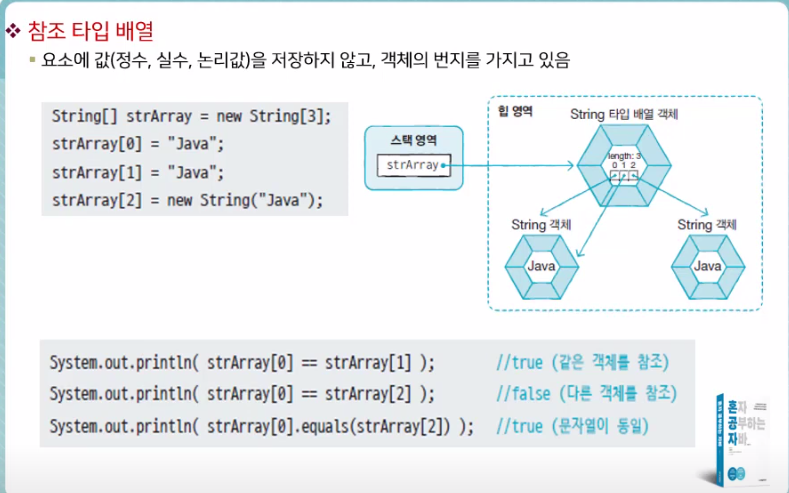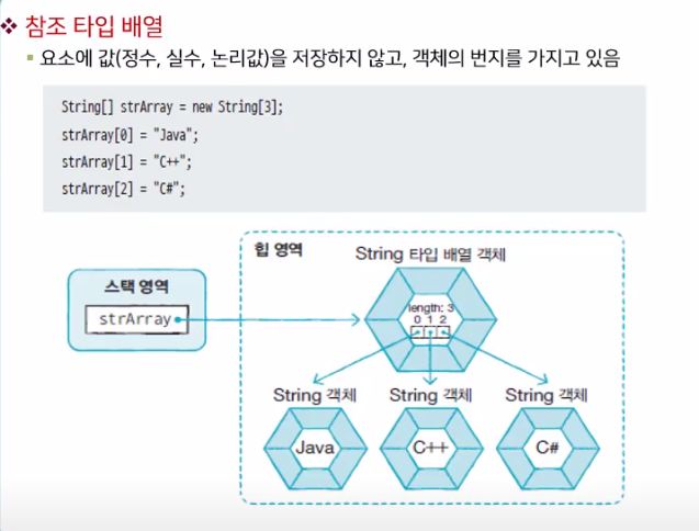 배열도 객체이므로 힙영역에 생성되고 배열변수는 힙 영역의 배열 객체를 참조하게 된다.
