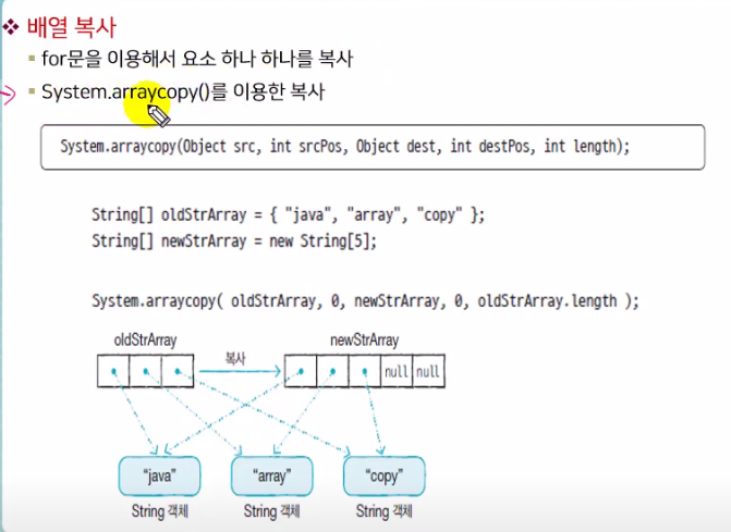 //앞서 복사가 될 데이터 배열 변수 oldIntArray의 값들을 newIntArray 배열 변수에