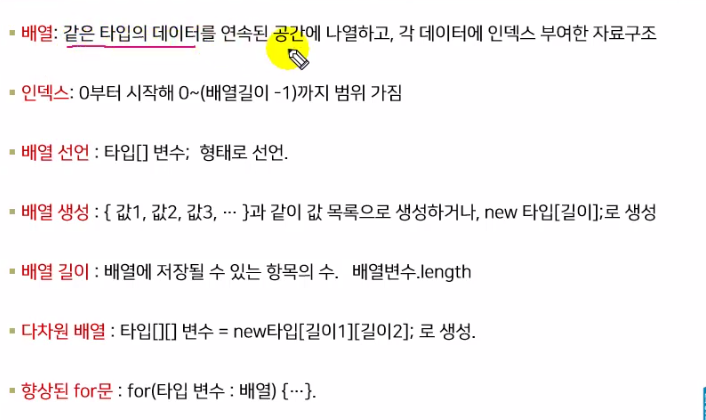 배열으 ㄹ사용하기 위해서는 우선 배열 변수를 선언해야한다.