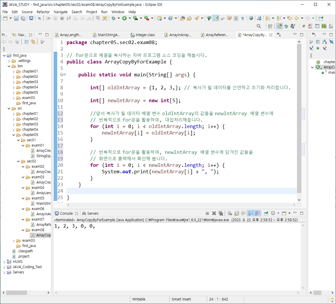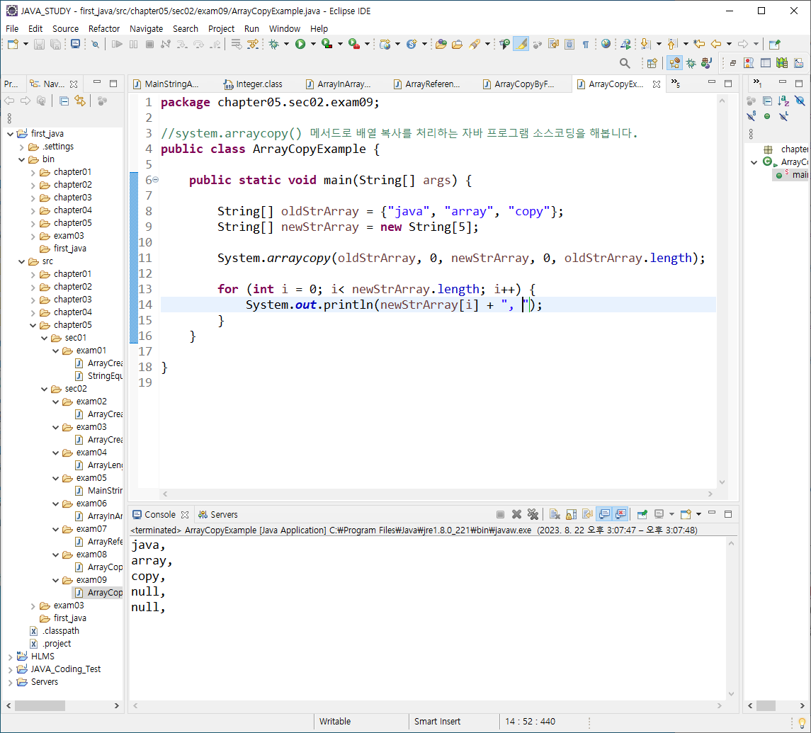 //system.arraycopy() 메서드로 배열 복사를 처리하는 자바 프로그램 소스코딩을 해봅니다.