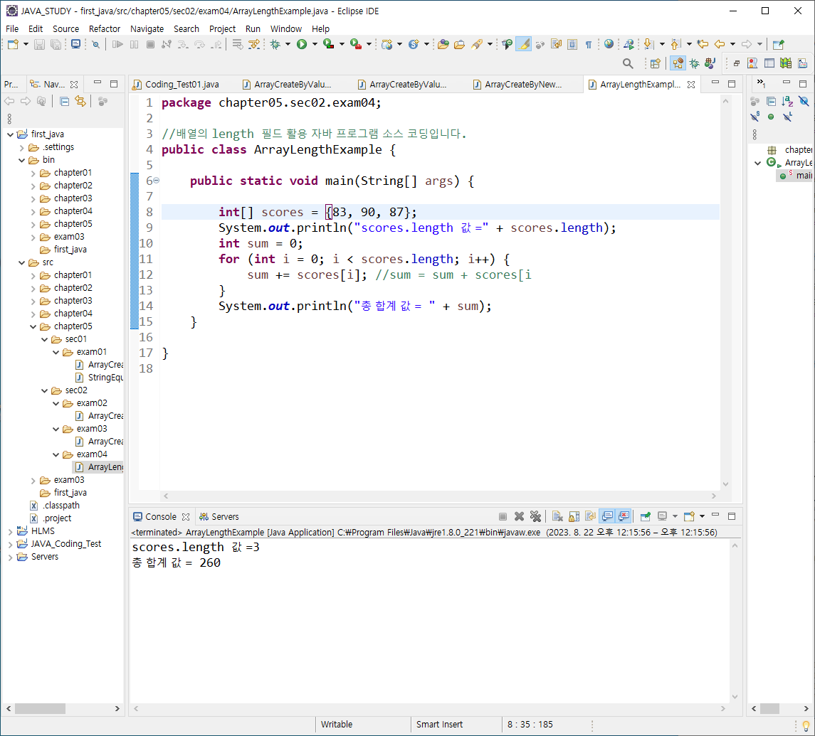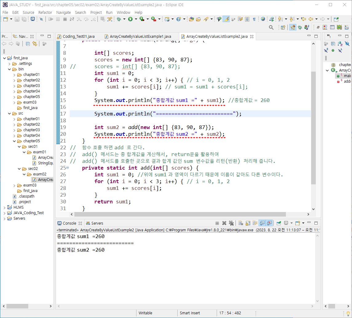 System.out.println("총 합계값 sum = " + sum); // 총 합계값 sum = 260