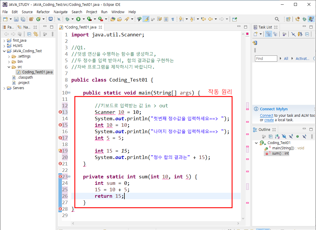 int sum1 = 0; //위에 sum1 과 영역이 다르기 때문에 이름이 같아도 다른 변수이다.