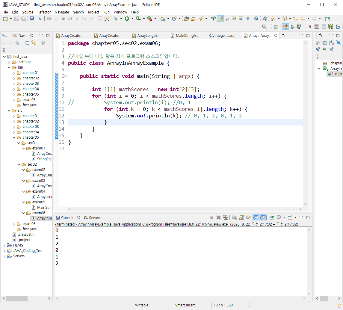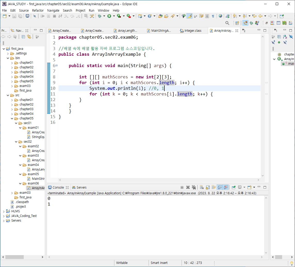 //배열 속에 배열 활용 자바 프로그램 소스코딩입니다.