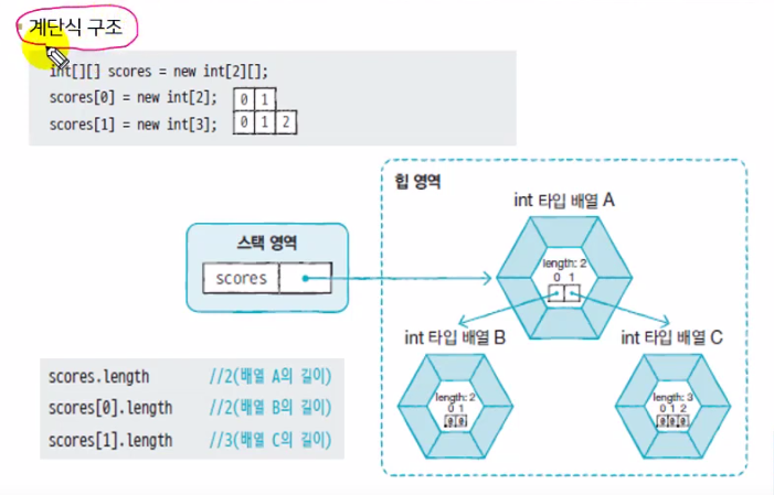 만일 참조할 배열 객체가 없다면 배열 변수는 null 값으로 초기화될 수 있다.