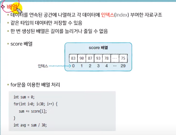 index 0-29공간을 선언과 초기화를 한번에 할 수 있다.