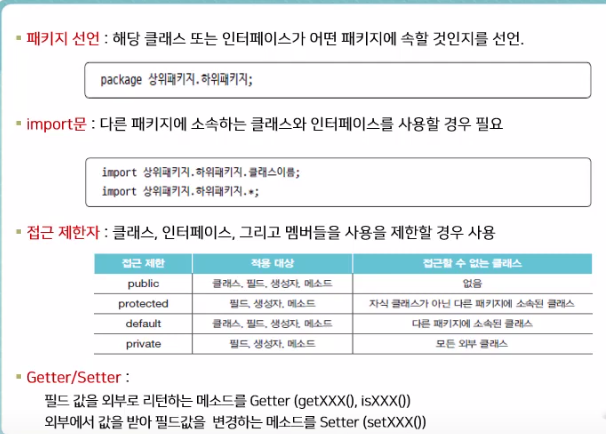 //메서드 선언: Getter와 Setter 선언 시 이클립스 개발툴에서는
