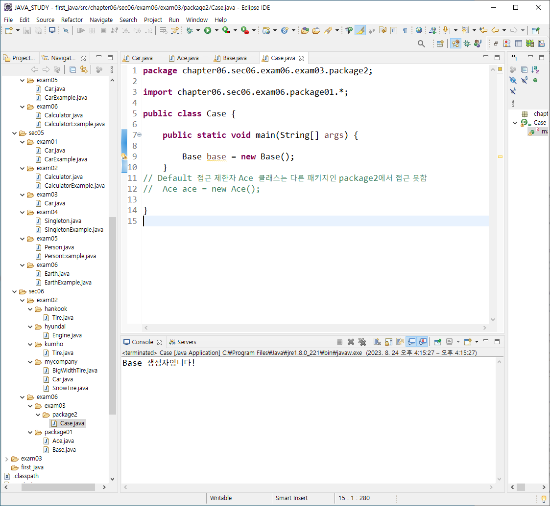 // 다른 패키지 영역인 package2 안에 생성한 Case 클래스에서 접근해 보는 예시입니다.