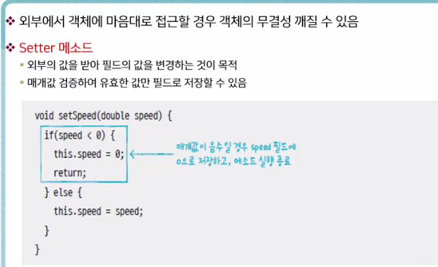 System.out.println("현재 속도 = " + myCar.getSpeed()); //현재 속도 0