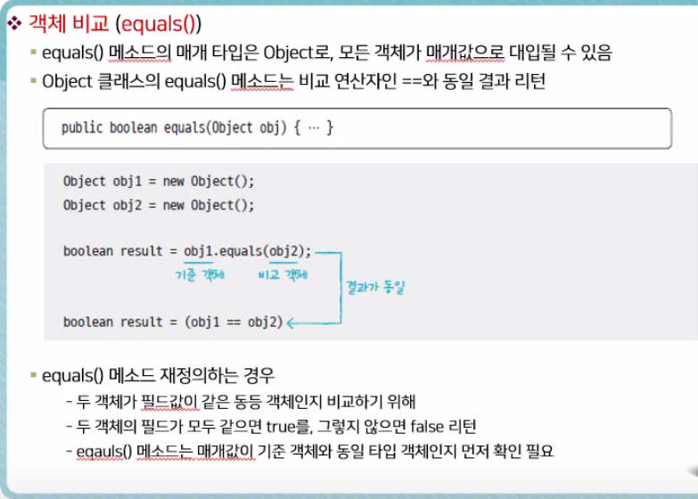 System.out.println("equals() 처리 결과: " + obj1.equals(obj2));