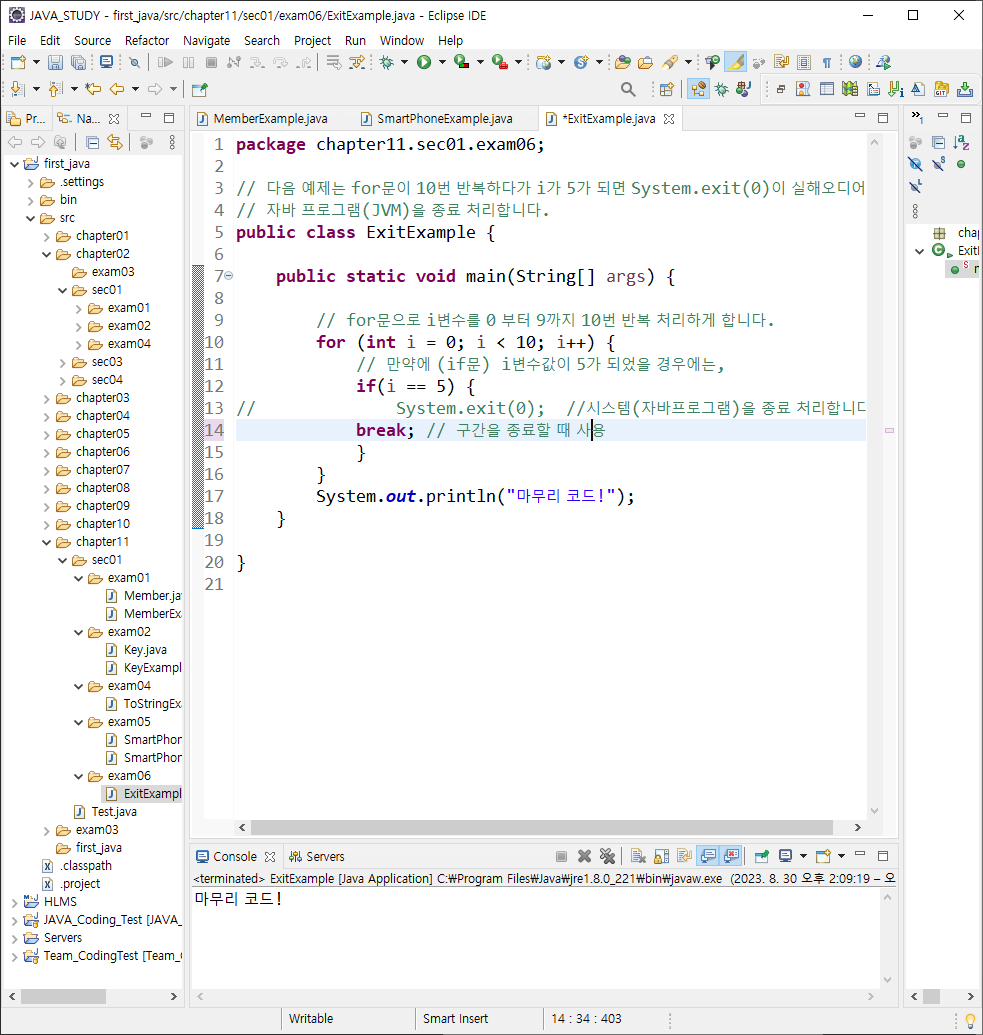 //객체 동등 비교(equals() 메서드 활용) 이해를 위한 MemberExample 실행클래스를 소스코딩합니다.