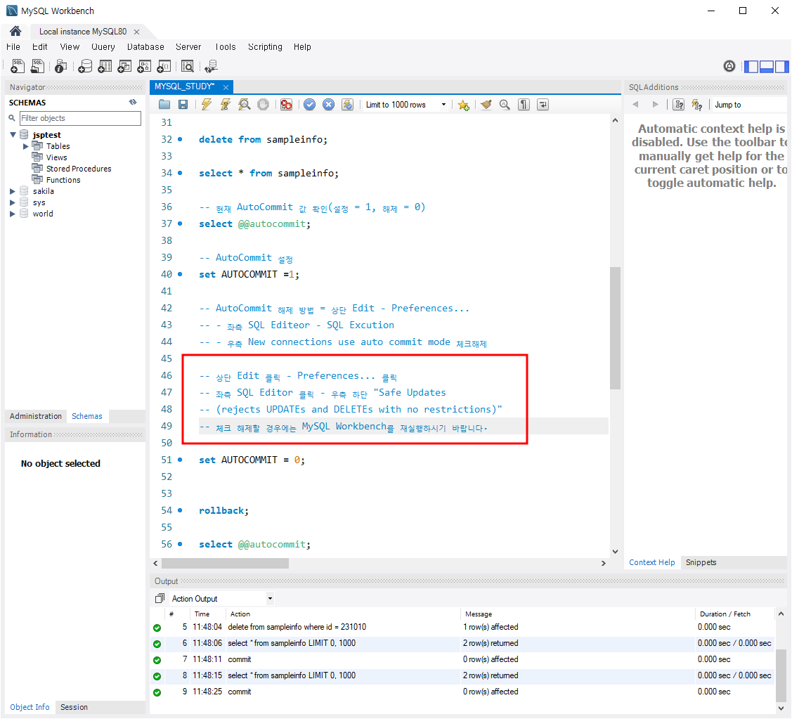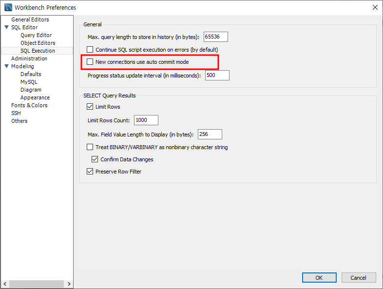 -- 체크 해제할 경우에는 MySQL Workbench를 재실행하시기 바랍니다.