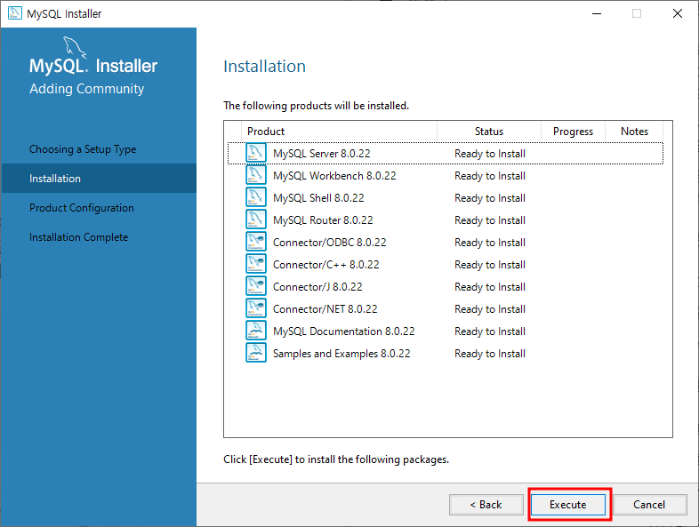 설치 확인 화면에서 [Execute] 버튼을 클릭하면 설치를 시작합니다.