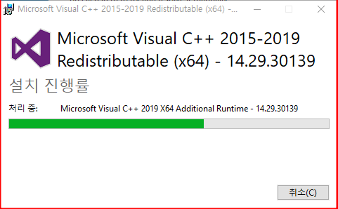 별도로 비주얼 스튜디오를 설치하지 않았다면 비주얼 C++ 런타임이 설치되어 있지 않은 경우가