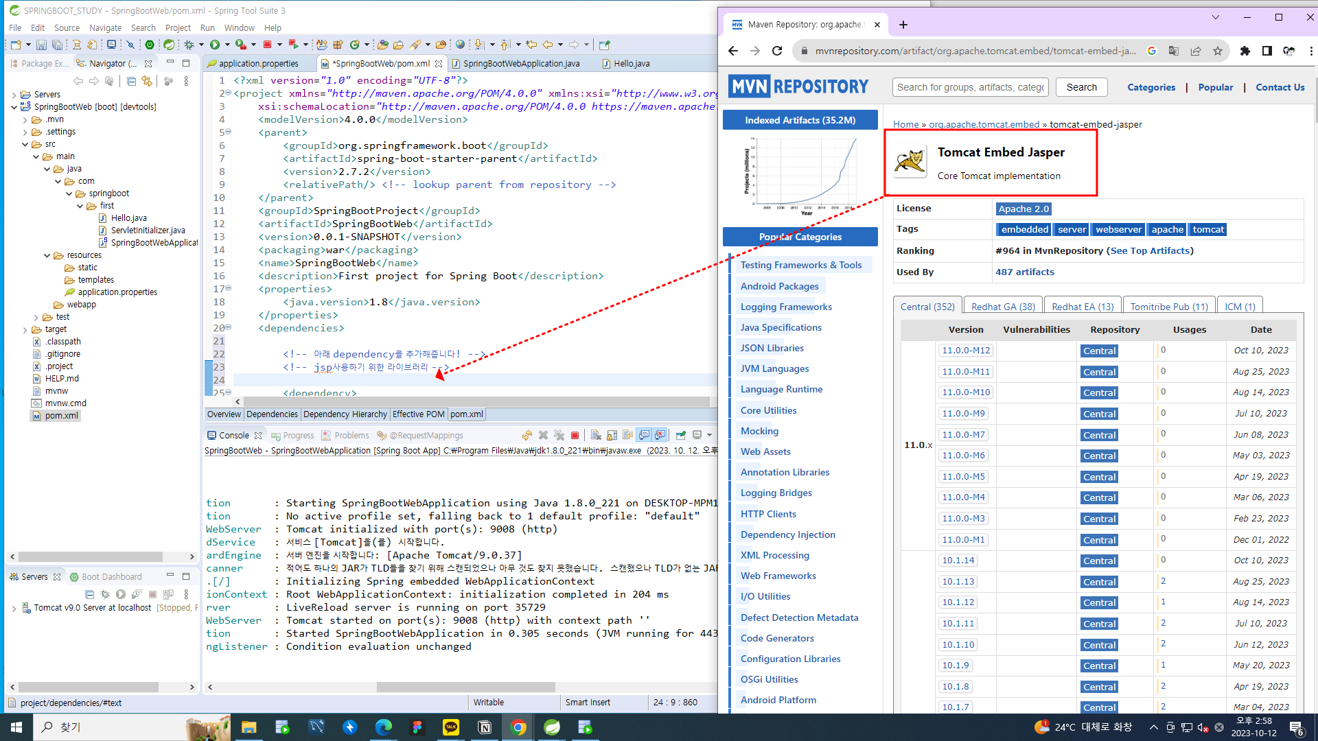 3) 중요 : SpringBoot STS(또는 이클립스) 내장 톰캣과 외부 톰캣 사용 시