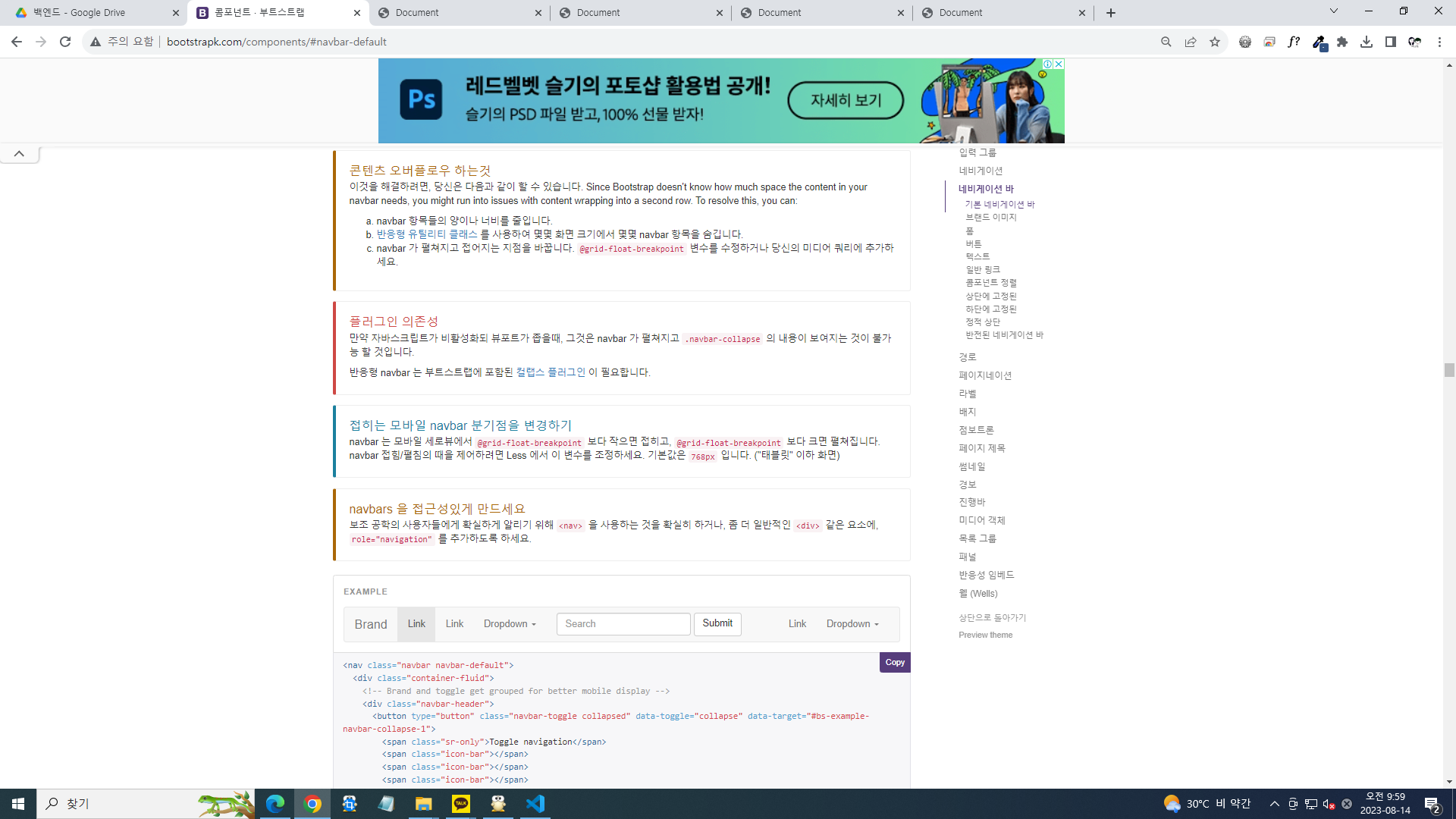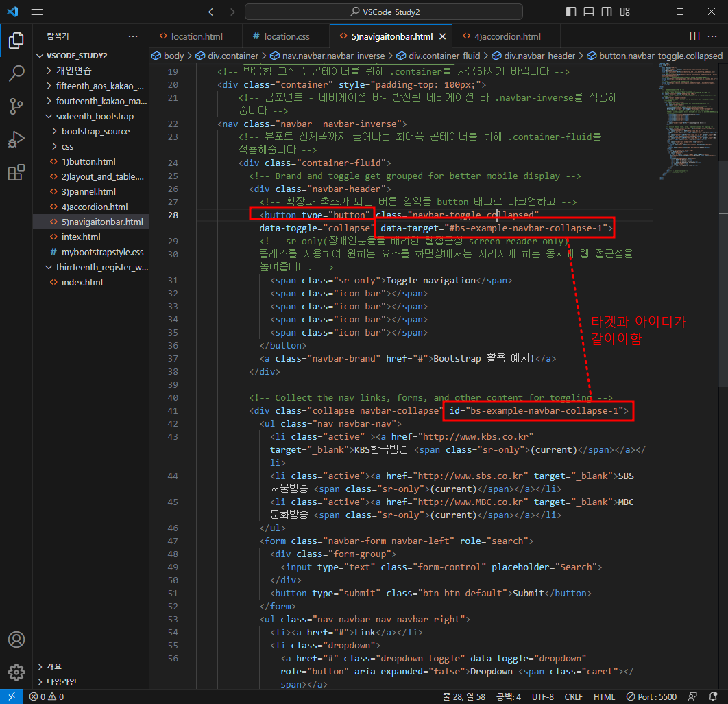 <!-- 콤포넌트 - 네비게이션 바- 반전된 네비게이션 바 .navbar-inverse를 적용해 줍니다 -->