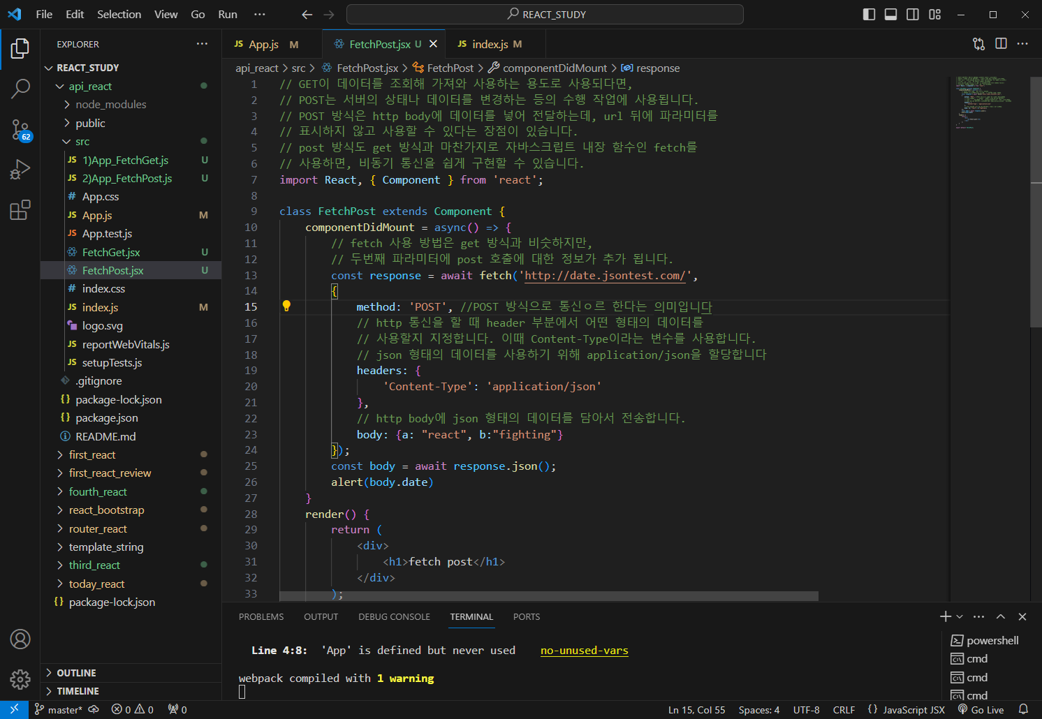 // post 방식도 get 방식과 마찬가지로 자바스크립트 내장 함수인 fetch를