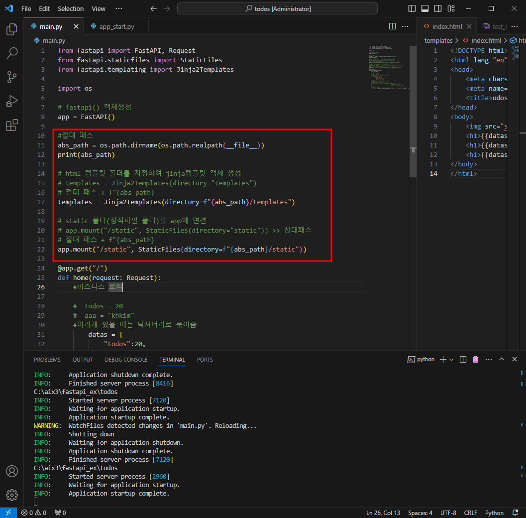 # html 템플릿 폴더를 지정하여 jinja템플릿 객체 생성