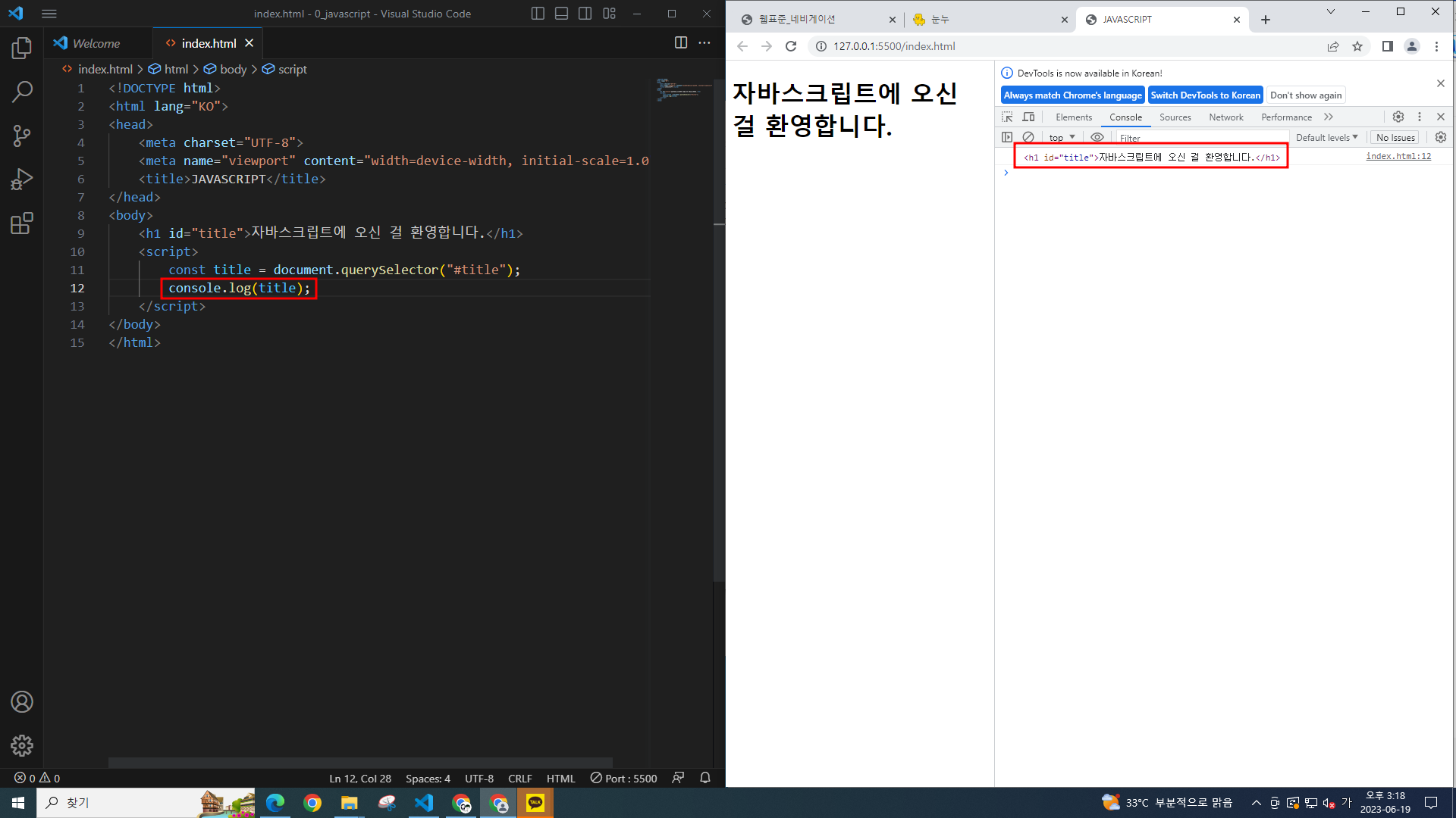 console.log(title); 로 결과값 확인