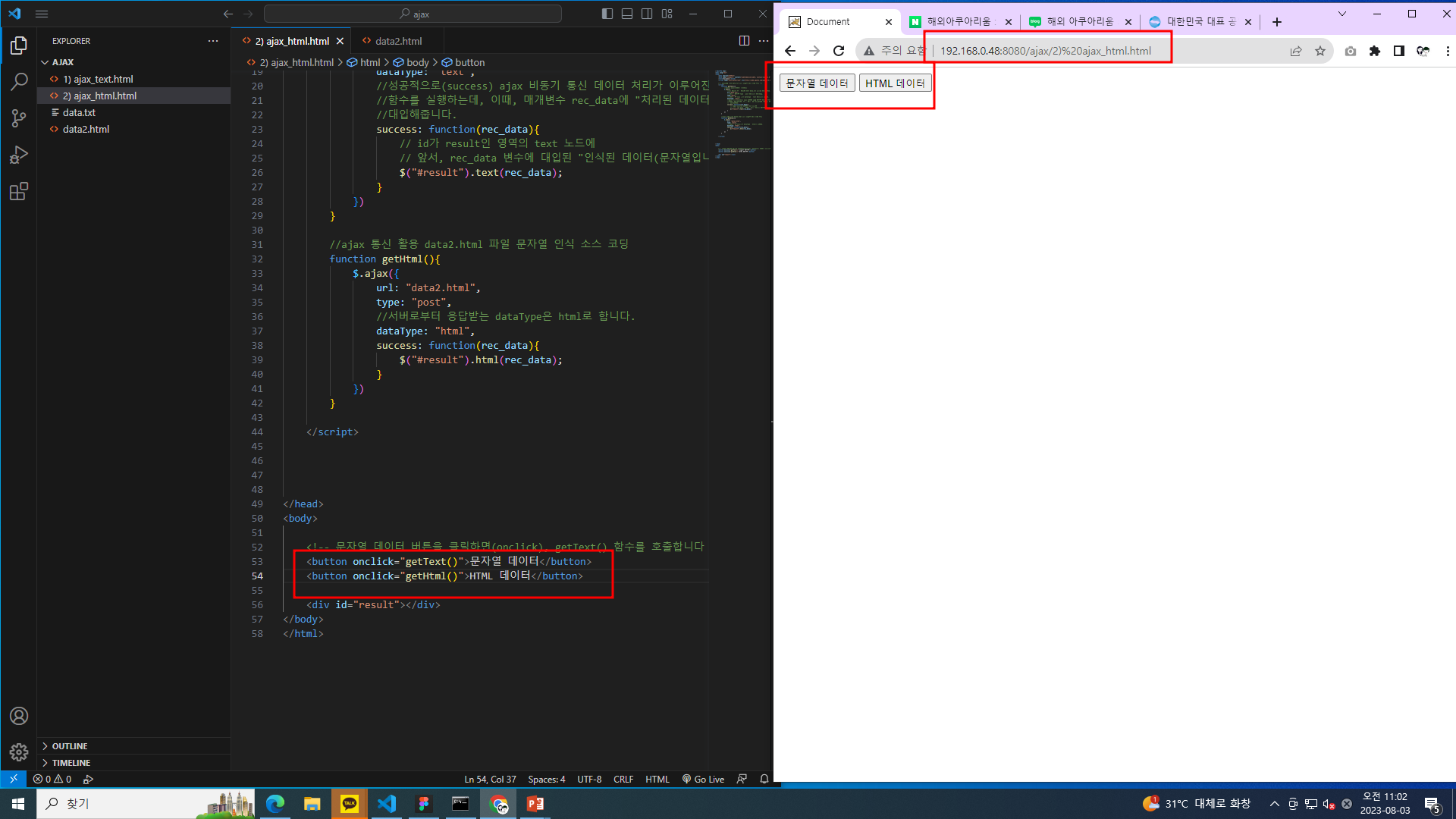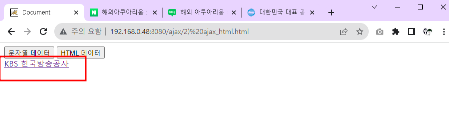 //ajax 통신 활용 data2.html 파일 문자열 인식 소스 코딩