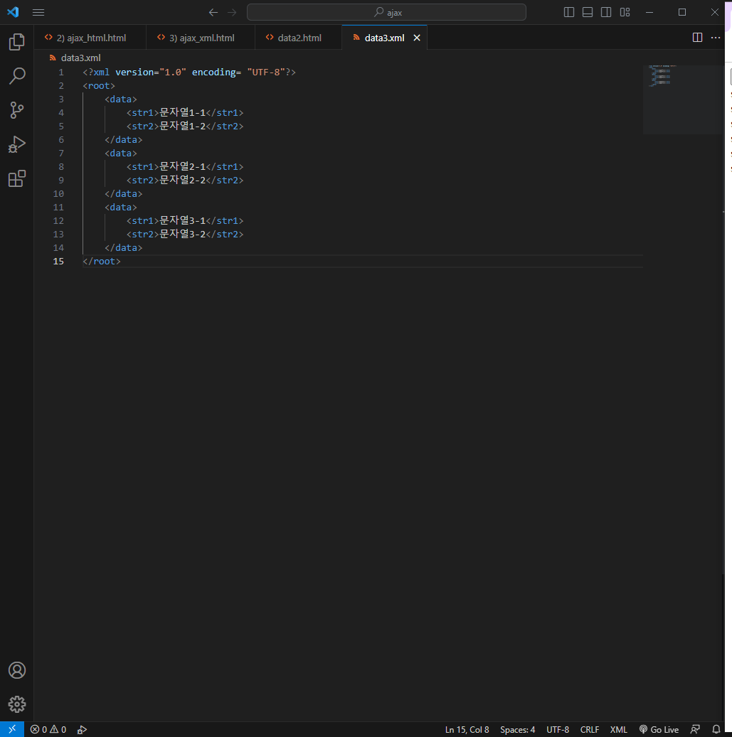url: "data3.xml" 와 같은 이름으로 data3.xml 파일을 새로 만든다.