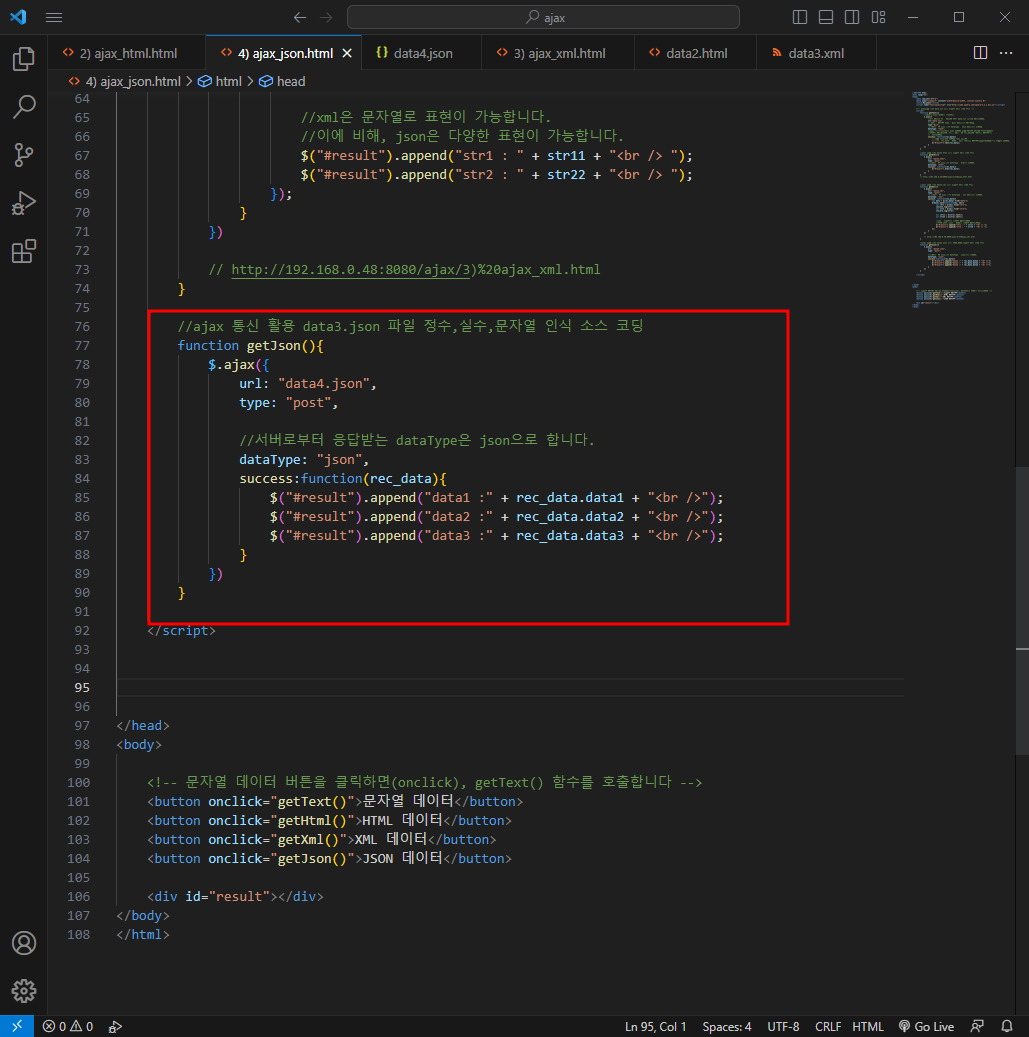 //ajax 통신 활용 data3.json 파일 정수,실수,문자열 인식 소스 코딩