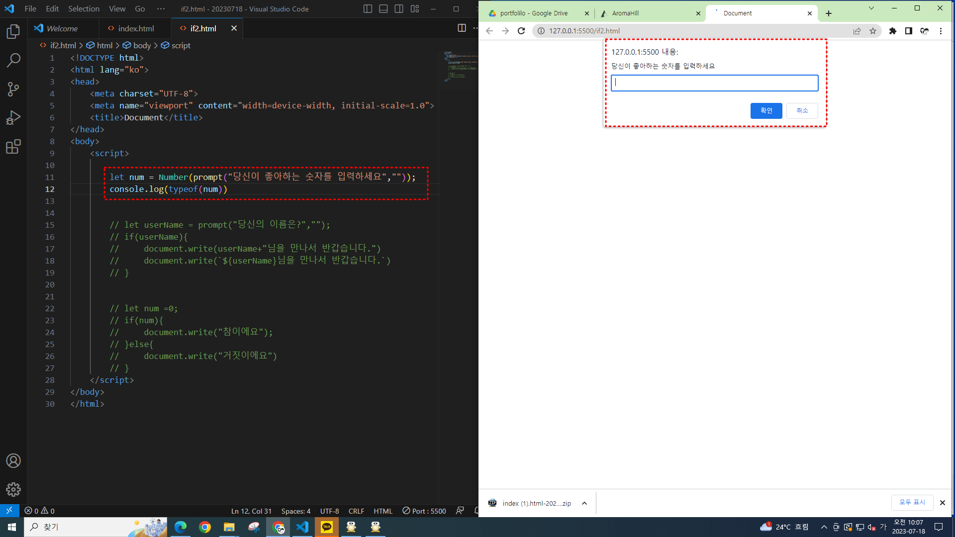 let num = Number(prompt("당신이 좋아하는 숫자를 입력하세요",""));