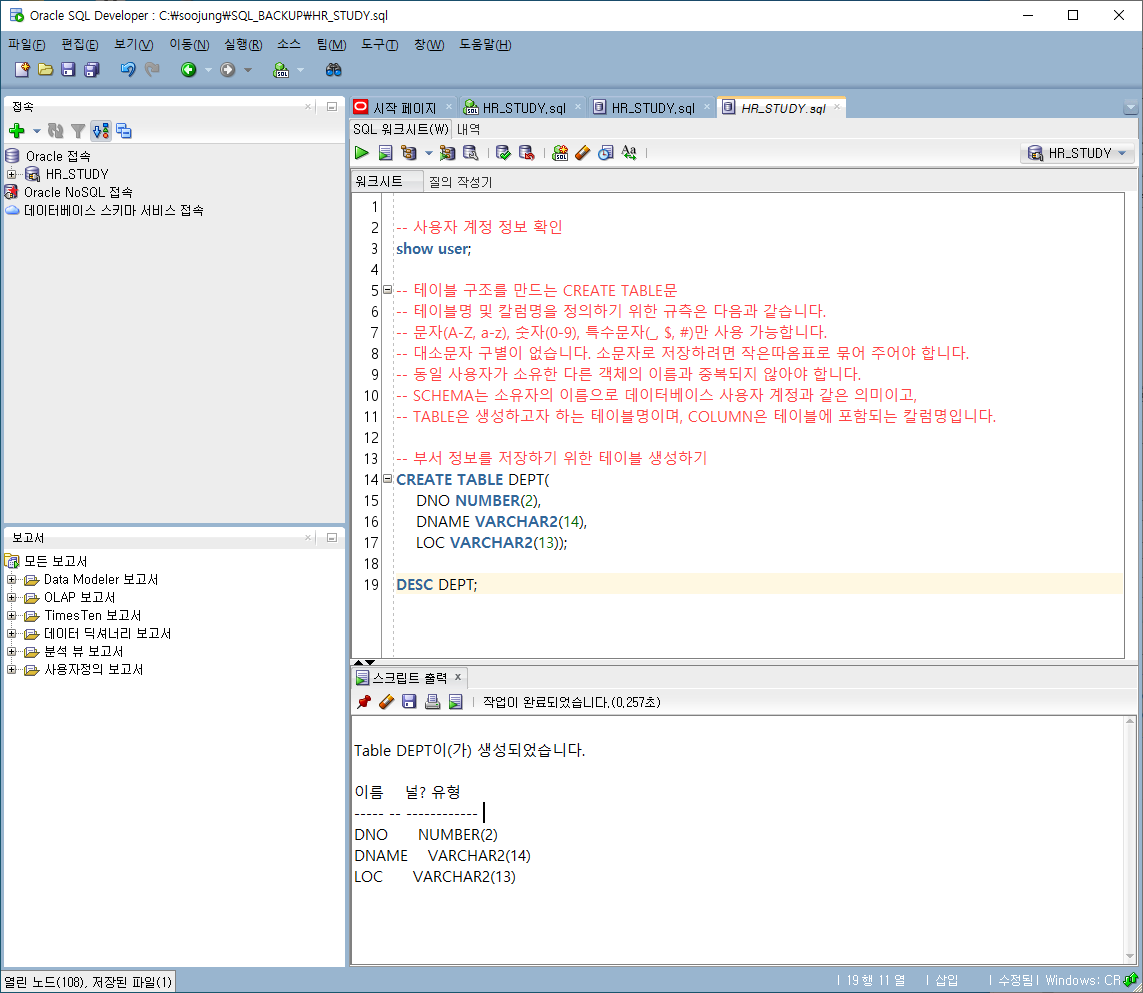-- 생성해 주고, 그 생성 결과를 확인해 봅니다.