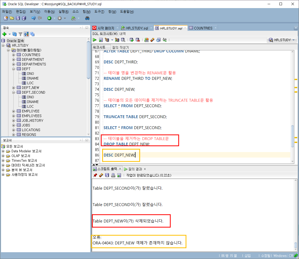 DROP TABLE table명 [CASCADE CONSTRAINTS] ;