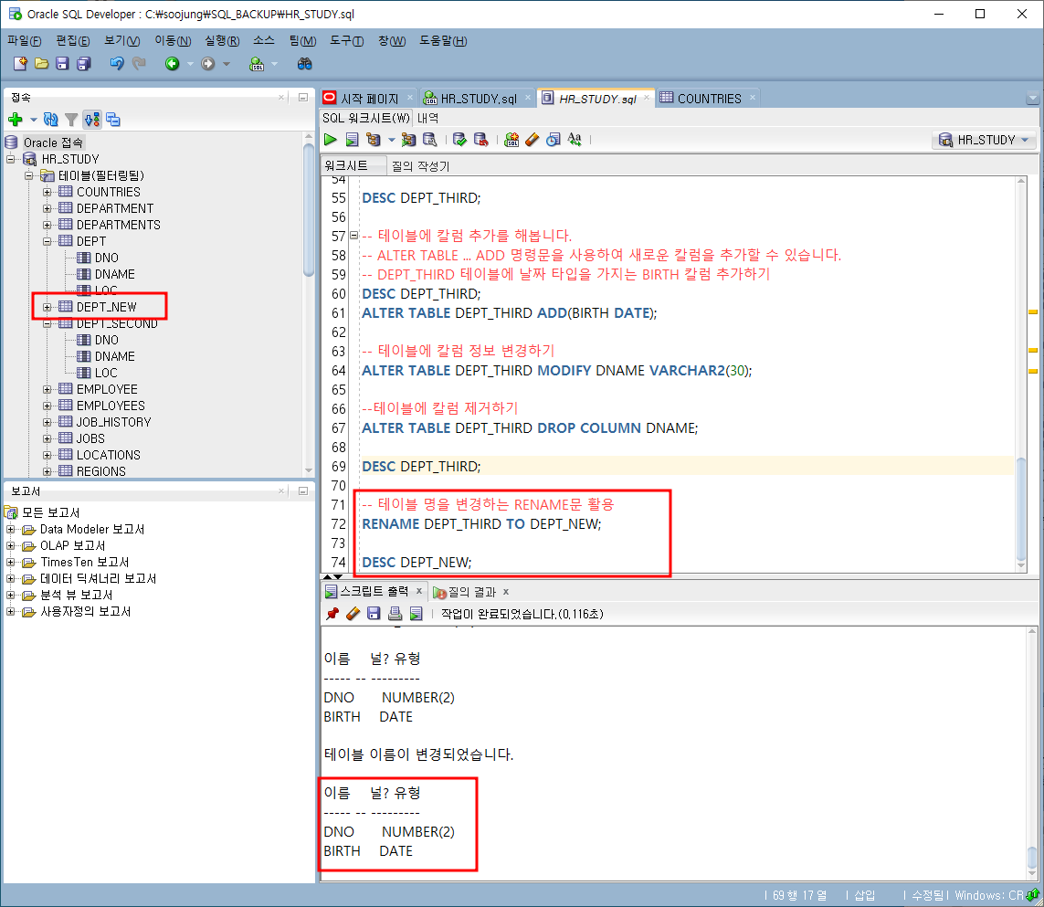 테이블을 포함한 객체의 이름을 변경하는 DDL 명령문으로 RENAME문을 제공합니다.
